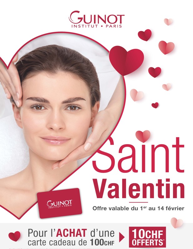 Du 1er au 14 février, pour l’achat d’une carte cadeau de 100 CHF, nous vous offrons 10 CHF supplémentaires.